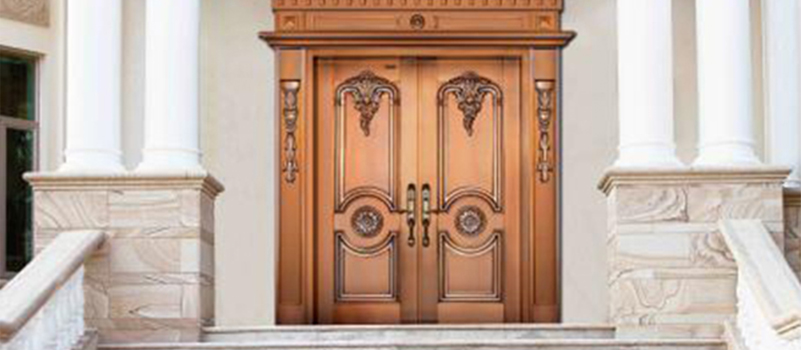 銅材具有質(zhì)地溫潤,耐腐蝕,抗氧化,不變形等優(yōu)良特性。現(xiàn)代銅門根據(jù)銅材 固有特性結(jié)合古今之工藝,融合東西理念,加之現(xiàn)代技術(shù)與手工的完美結(jié)合使其具有 外觀典雅莊重,氣質(zhì)渾厚,使用安全方便的特性,不僅僅是表面的豪華,更是一種 文化底蘊的彰顯,身份地位的象征!
